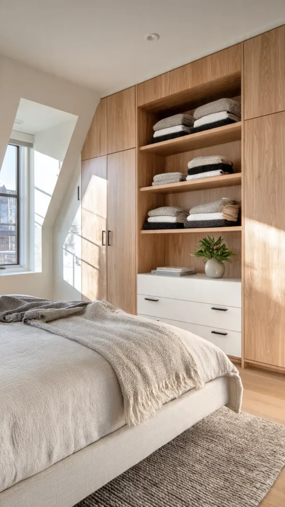This approach enhances both function and beauty, keeping the bedroom feeling spacious and peaceful.