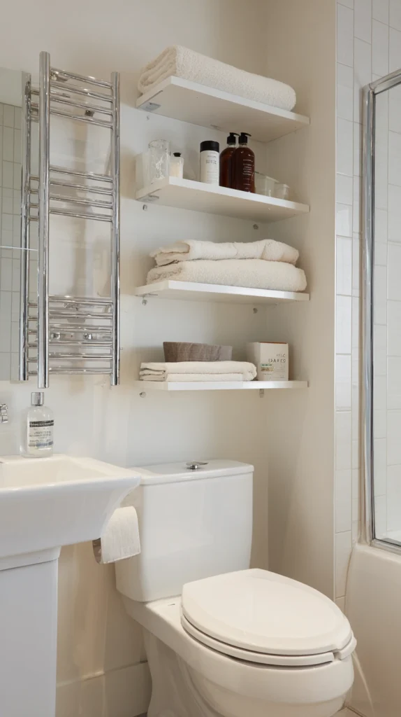 Install removable floating shelves using adhesive mounting systems or tension rods creating display and storage opportunities without drilling permanent holes landlords prohibit. Choose shelves in finishes coordinating with existing cabinetry, install using damage-free hanging systems designed for rental applications, and style thoughtfully with attractive storage containers, rolled towels, plants, and decorative objects.