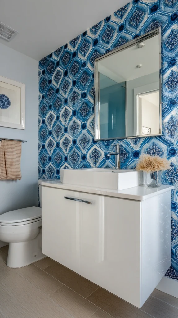 Apply to walls behind toilets, above wainscoting, or on largest uninterrupted wall surfaces maximizing impact. Quality removable wallpaper adheres firmly during use then peels away cleanly leaving no residue or damage, making it ideal for rental applications where reversibility is essential.
