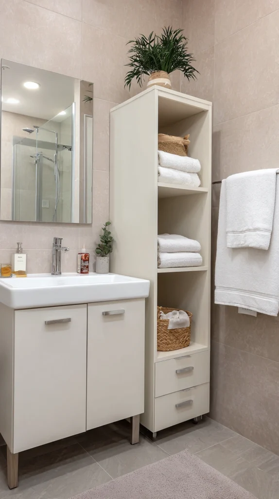 Choose pieces scaled appropriately for available space maximizing storage without crowding limited square footage, select finishes coordinating with existing cabinetry creating intentional rather than mismatched appearances, and position strategically filling awkward corners or unused wall spaces. Freestanding storage requires no installation beyond simply positioning furniture, making it completely rental-friendly while providing essential organization many rental bathrooms lack through inadequate permanent storage.