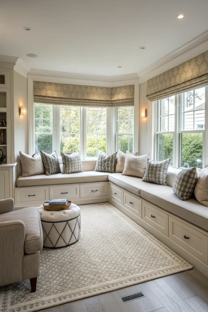 Picture a calm living room corner where the bay transforms into a full reading retreat, blending seamlessly with modern interiors.