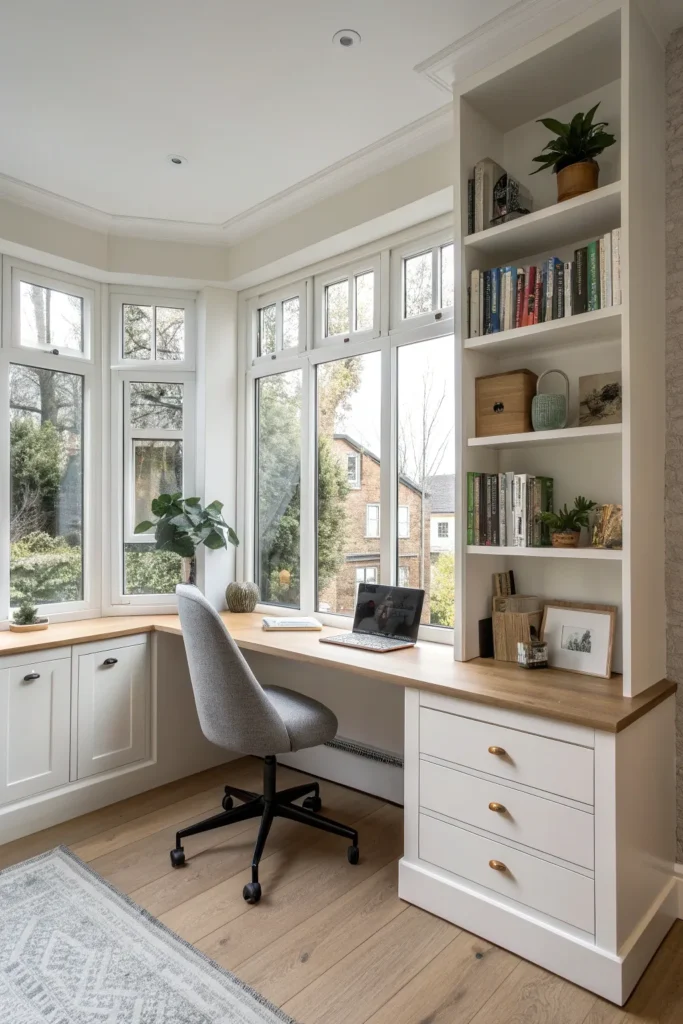 A bay can redefine the entire room by anchoring a home office within a larger living space. The result: work feels connected to the home yet distinct.