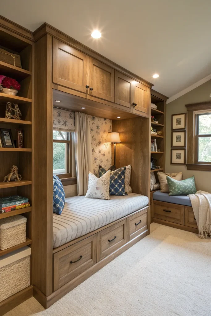 Built-in seating is an excellent option for custom bedrooms or renovations. A built-in bench or nook can be designed to fit perfectly within the room’s layout. Add cushions and pillows to make it comfortable while maintaining a clean, integrated appearance.