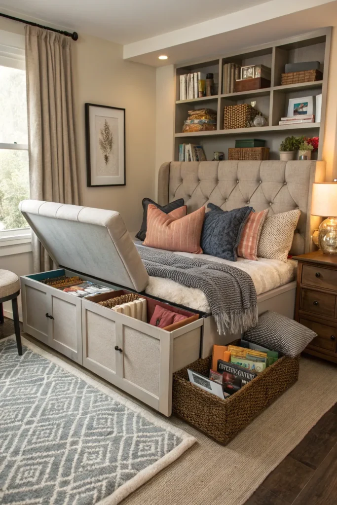 Maximize functionality by choosing seating with built-in storage, such as an ottoman or storage bench. This keeps the bedroom organized while providing a comfortable place to sit. It’s an ideal solution for smaller spaces where every piece of furniture needs to serve more than one purpose.