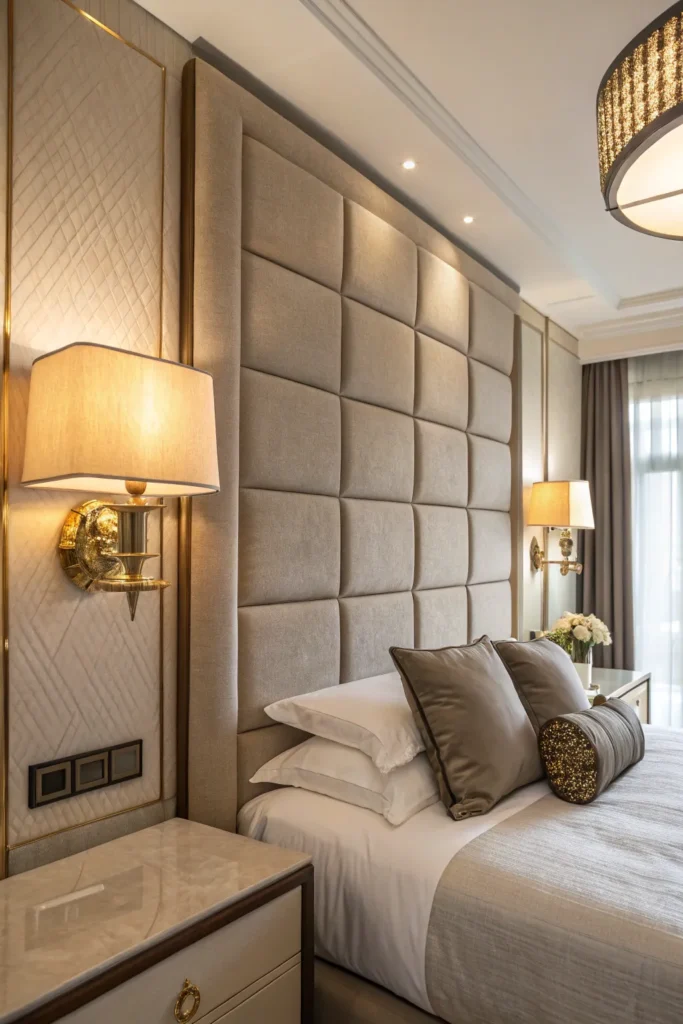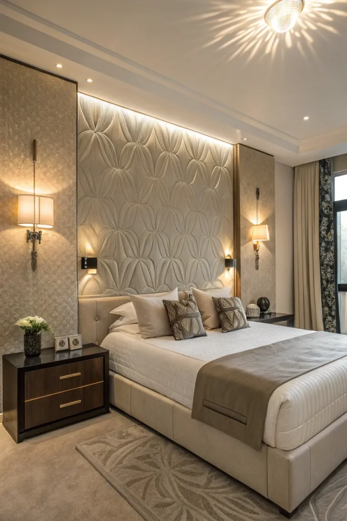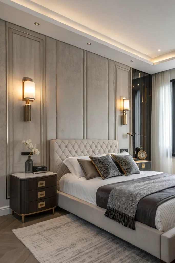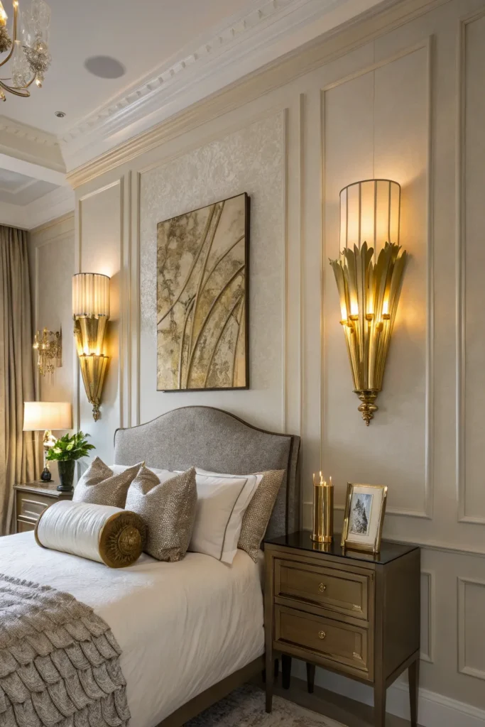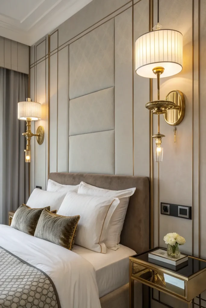 This strategy works well in minimalist bedrooms where fewer items are preferred. A bold sconce design draws the eye upward, making the room feel taller and more spacious.