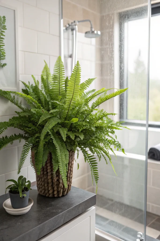 One of the most beloved moisture-loving plants, the Boston fern is practically made for bathroom environments. Its fluffy fronds soak up humidity from the air while giving your bathroom a tropical, spa-like feel. Boston ferns even help balance air moisture levels, making the room feel fresher.