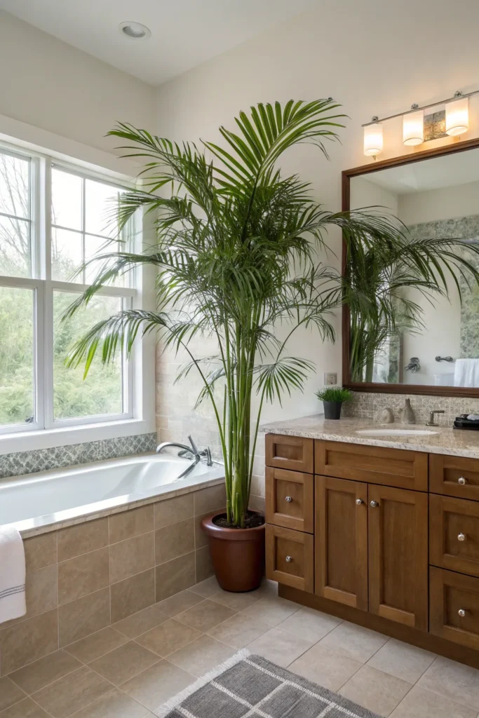 With its upright, tropical appearance, the bamboo palm brings elegance and clean air to your bathroom. It thrives in humidity, making bathroom environments perfect for its growth. It doesn’t just absorb moisture—it’s also known for removing airborne toxins.