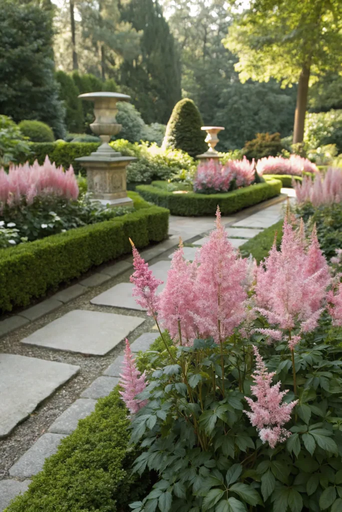 Astilbe’s feathery plumes of pink, white, or red flowers brighten any shady corner and attract pollinators.