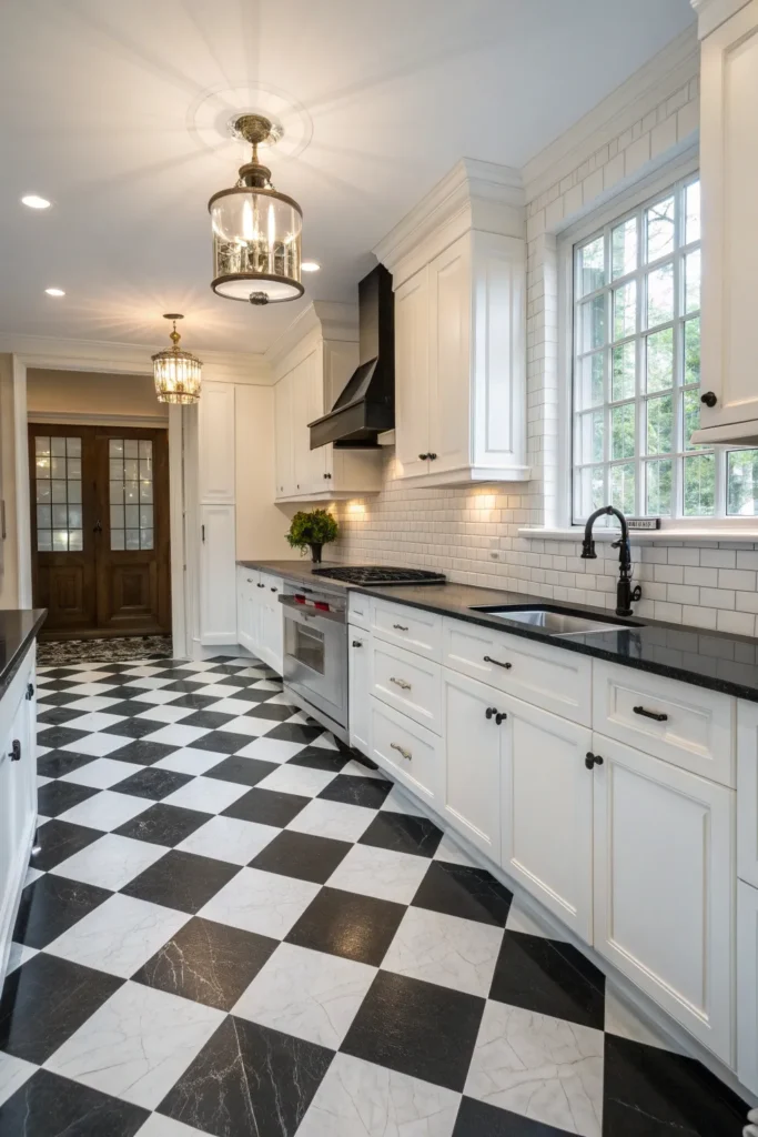 Create instant vintage charm and visual drama with a traditional black and white checkerboard floor pattern.