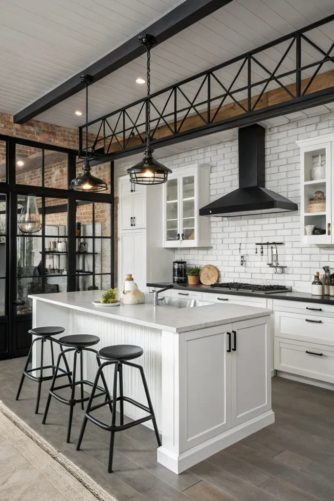 Combine rustic farmhouse elements with the classic black and white color scheme.