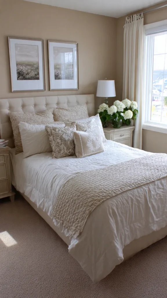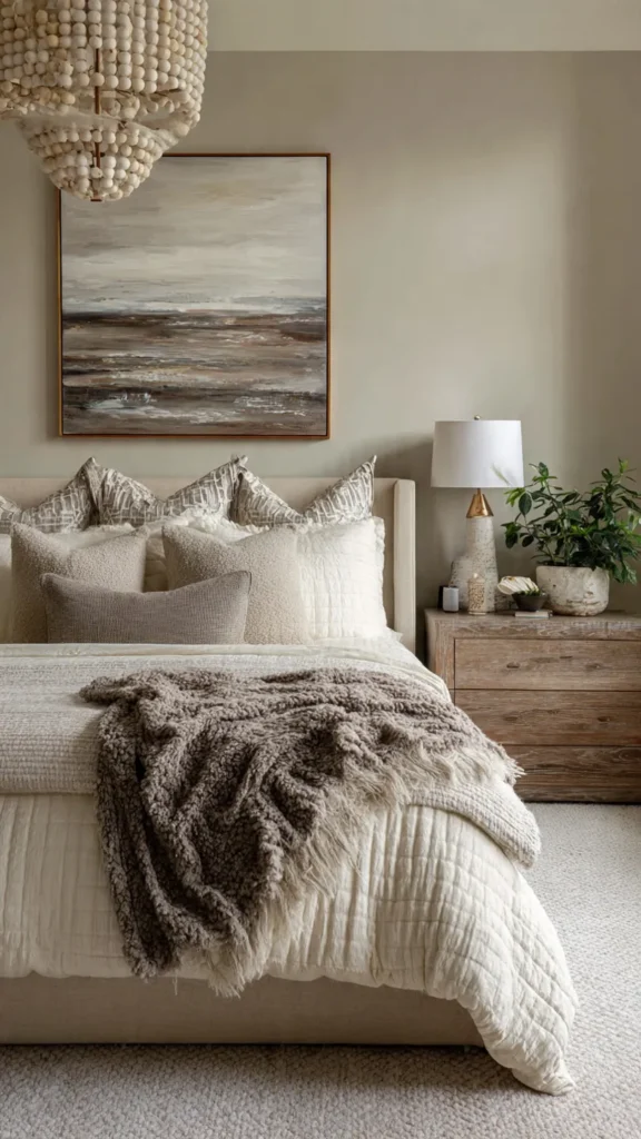 Layering different shades of beige, taupe, ivory, and warm gray creates a visually rich space that still feels calm and cohesive. This approach avoids harsh contrast and instead builds depth through subtle variation. A bedroom with layered neutrals feels peaceful because nothing visually shouts for attention. Everything flows gently, allowing the mind to relax and the body to feel at ease in its surroundings.