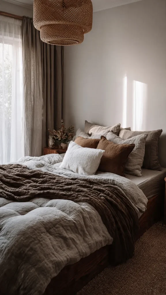 An earthy bedroom is not just about using brown or beige tones; it is about creating a space that feels grounded, calm, organic, and emotionally soothing.