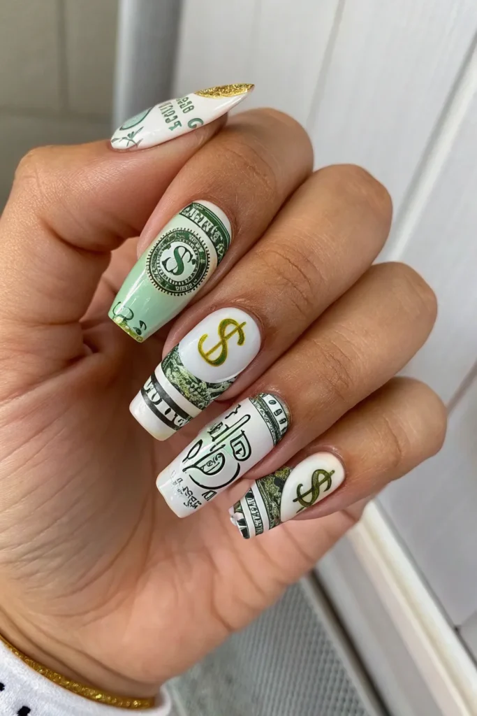 7. Money-Inspired Nails