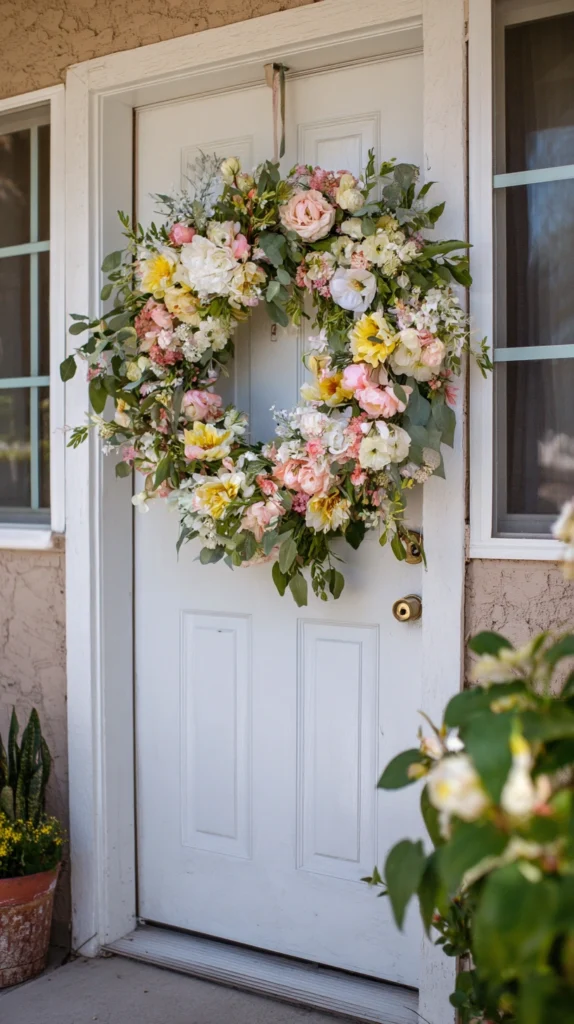If you prefer real blooms, dried lavender, eucalyptus, or pampas grass make beautiful, long-lasting wreaths. A wreath centered on your front door immediately communicates warmth and seasonal intention.