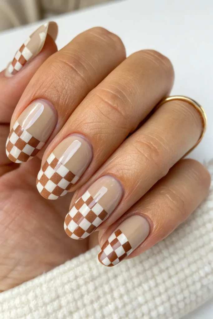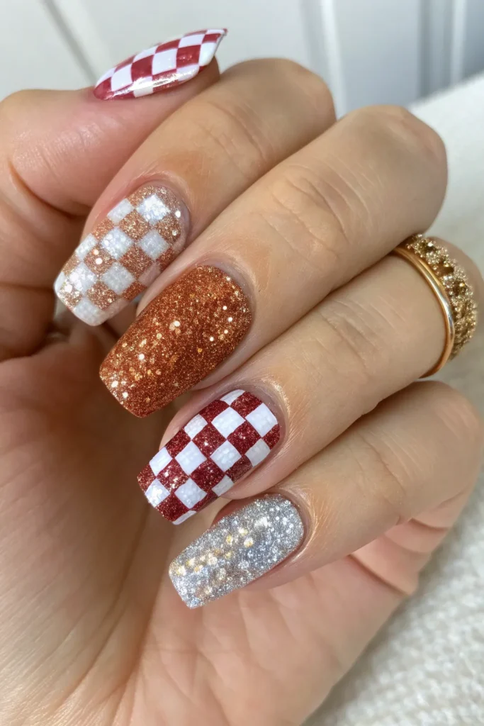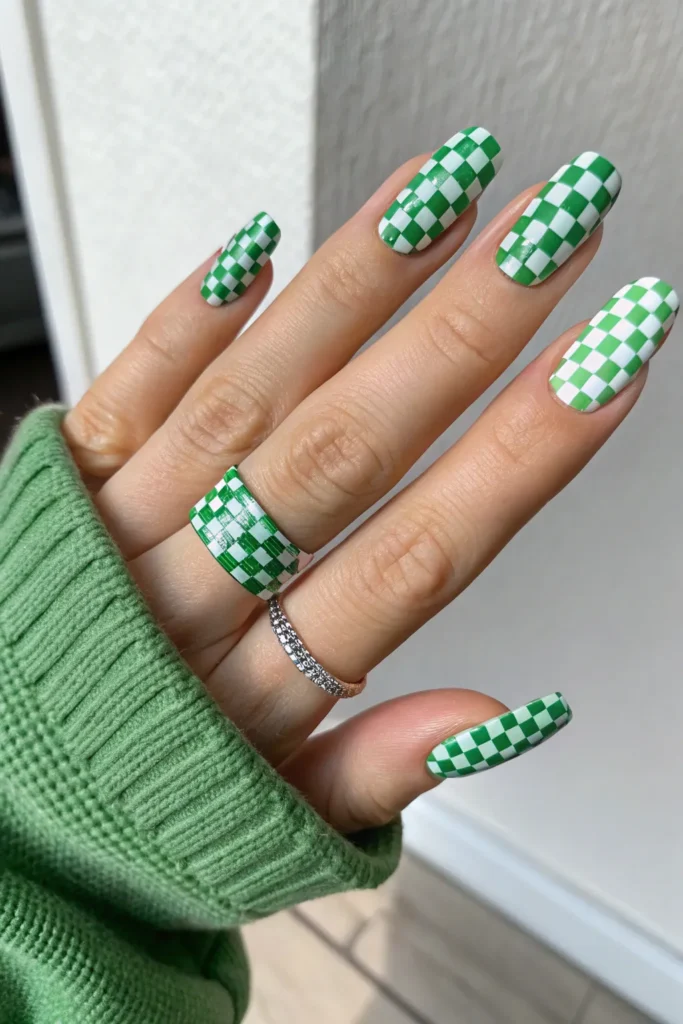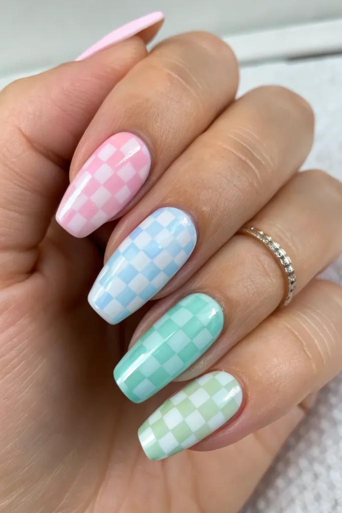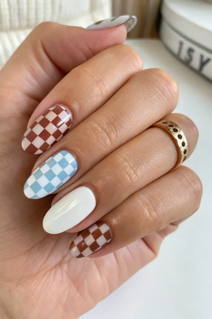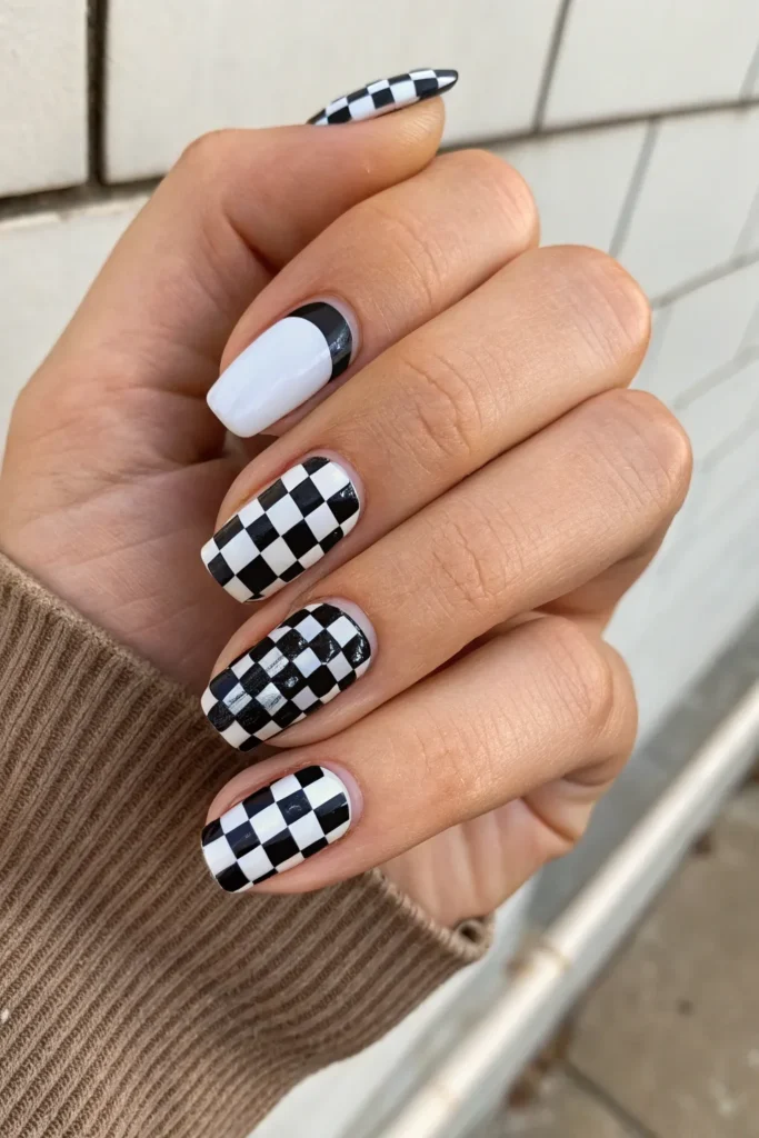 If full checkered nails feel too bold, try just one or two accent nails. Pair them with solid colors like nude, white, or blush pink to keep things balanced.