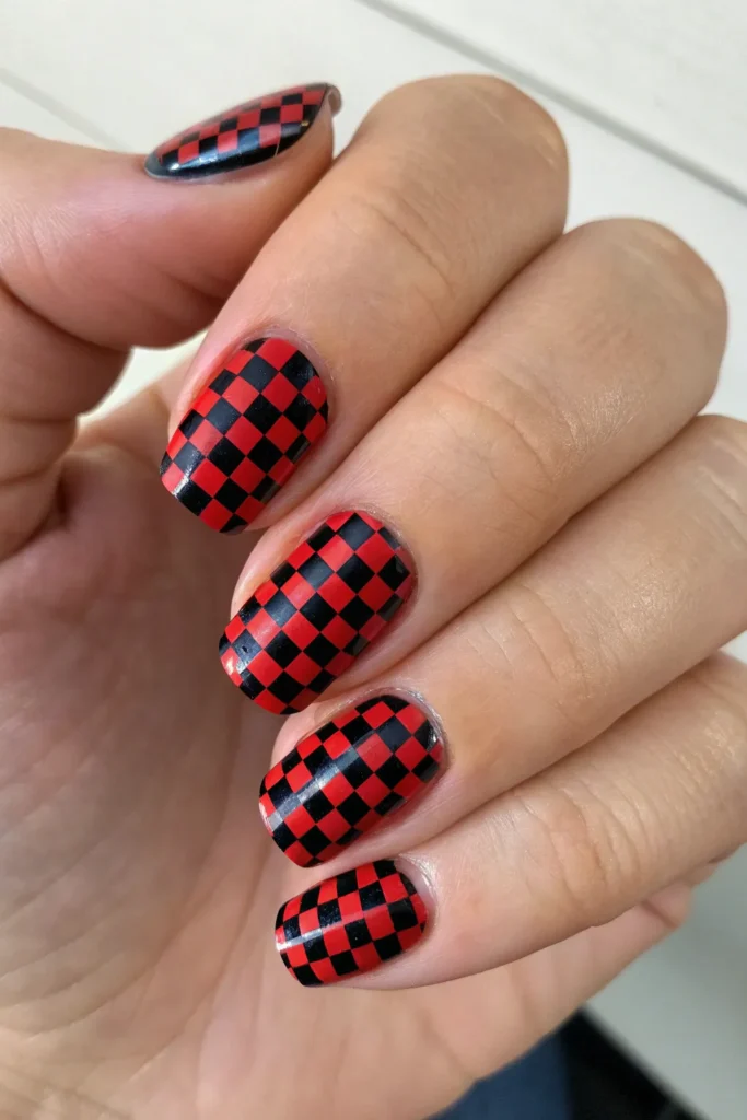 Bring out your inner rockstar with black and red checkered nails. This fiery combination gives major punk-meets-vintage energy — daring yet undeniably stylish.