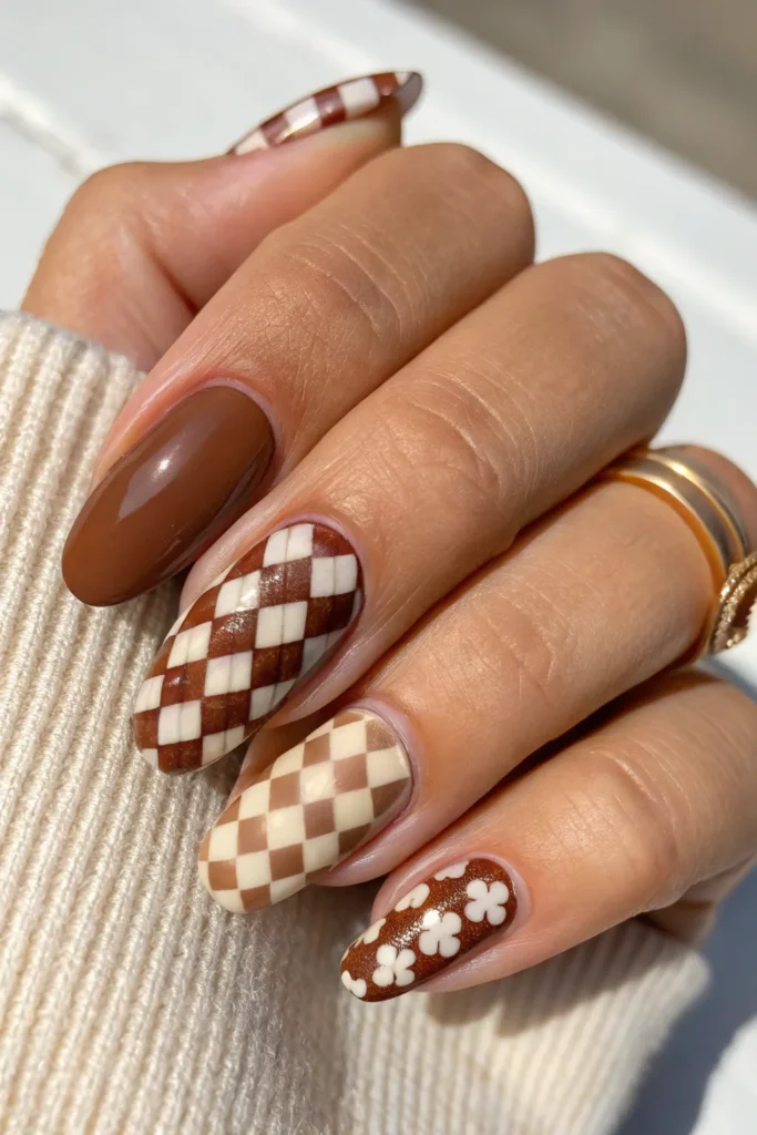 For a cozy and sophisticated twist, try warm earthy tones. Brown and beige checks feel neutral yet stylish, making them perfect for fall or winter.
