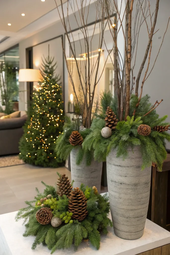 If you love a more organic style, use greenery as your main decoration. Garland draped over mantels, wreaths on doors, and pine branches in vases bring freshness indoors. Add small pinecones, berries, or cinnamon sticks for scent and color.
