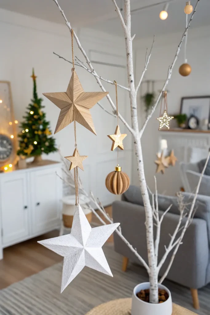 Scandinavian decor is all about minimalism, natural light, and cozy details. Use neutral colors like beige, gray, and white, with small touches of green from pine branches. A few simple paper stars or wooden ornaments bring just the right amount of holiday cheer.