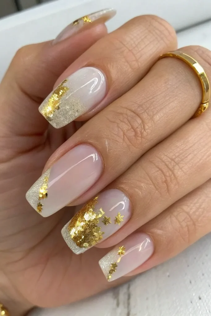 2. Clear Nails with Gold Foil Accents