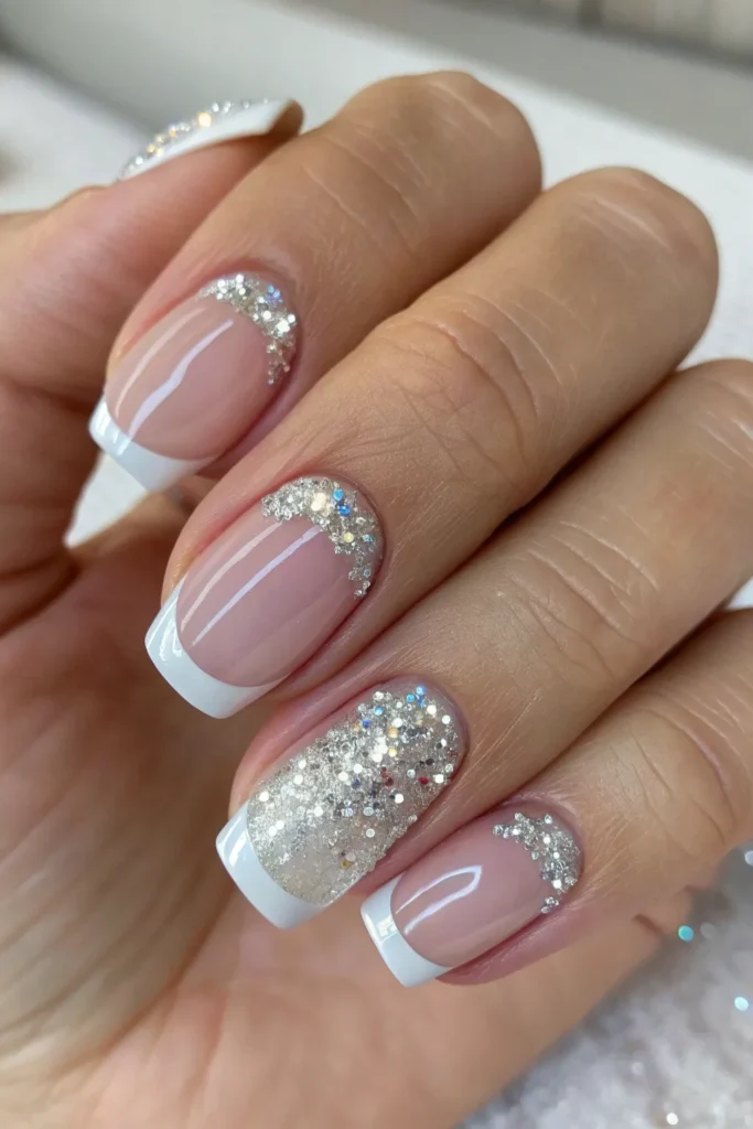 This version keeps the minimalist essence of French nails but adds a festive twist—great for parties or even everyday glam.