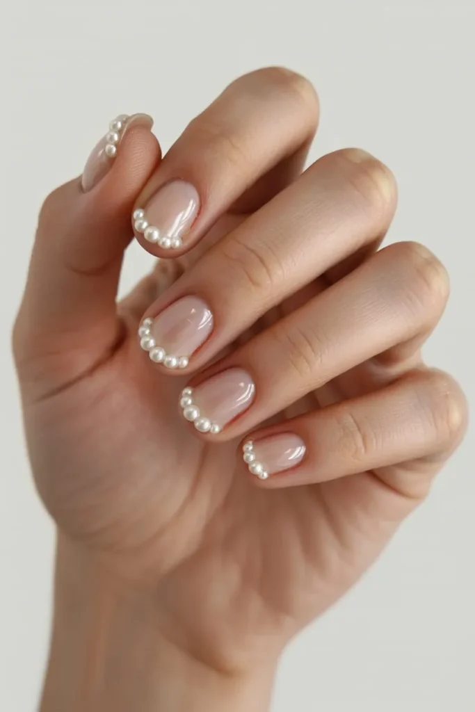 8. Clear Nails with Pearl Embellishments