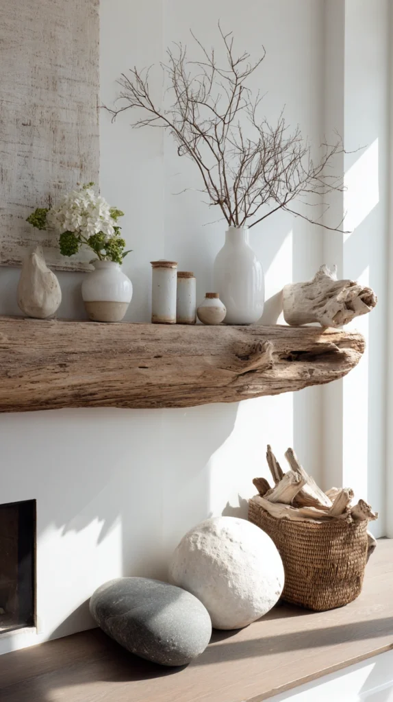 The cost of found natural objects is zero beyond the time and attention required to find them. Driftwood suitable for display — smooth, pale, interesting in form — is found on beaches and riverbanks. Smooth stones come from the same places. Dried seed pods, grasses, and branches are found in hedgerows and open countryside. Supplement the collection with a simple wooden or stone base ($5–$15) if a found object needs a display surface to sit on securely. The arrangement of found objects on a mantelpiece or shelf should look like a collection gathered over time — because it is.