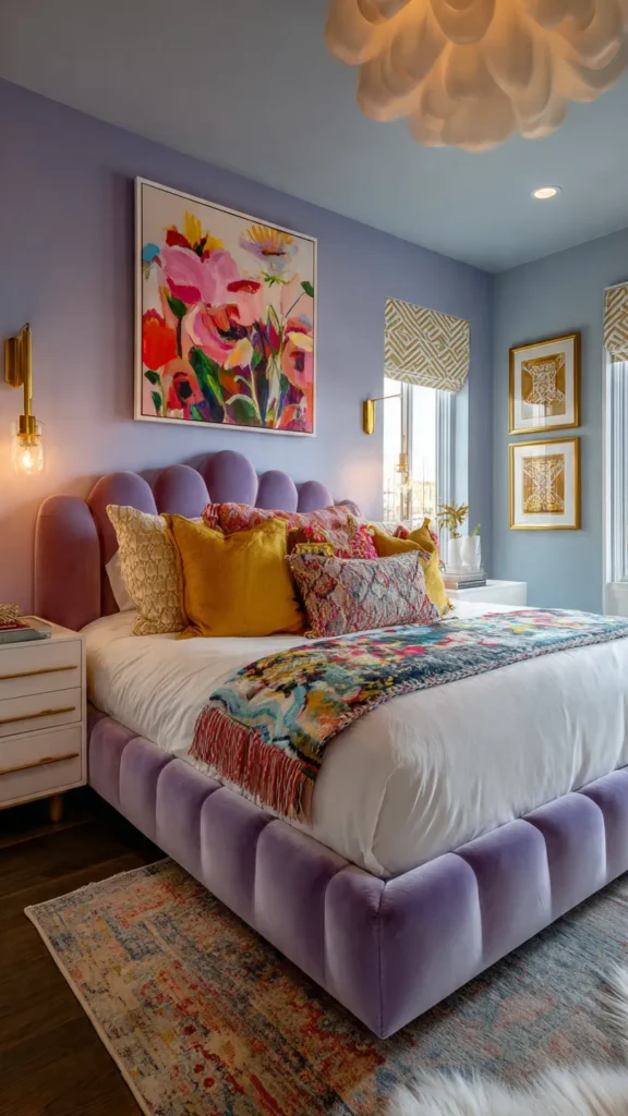 Each idea below explores how color, texture, and individuality can come together to form a bedroom that feels vibrant yet thoughtfully composed.