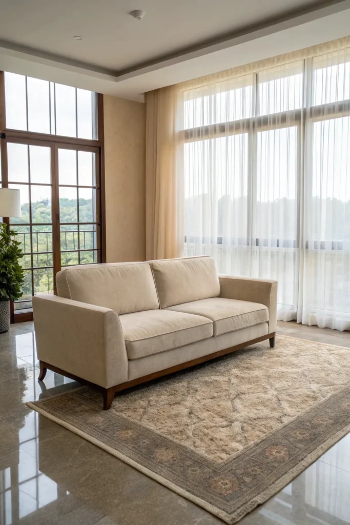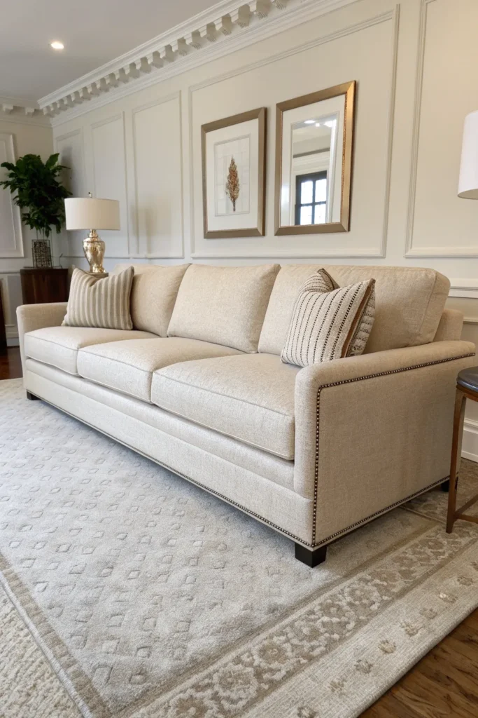Layers in silk or cashmere throw pillows, plush area rugs, and soft throws that add comfort while contributing visual richness that makes the space feel indulgent and special.