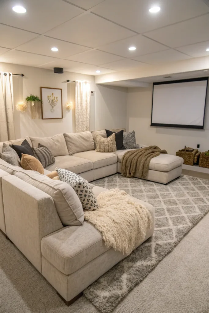 Rather than permanent built-in seating, fill your sunken area with modular floor cushions, oversized poufs, and bean bags that can be rearranged to suit different group sizes and preferences.