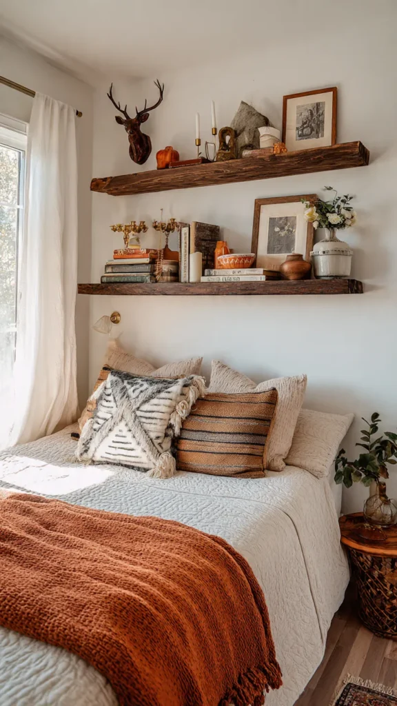 Open shelves provide an opportunity to showcase charming decor while keeping the room functional. Arrange books, baskets, small plants, and vintage trinkets thoughtfully. Keep the display light and balanced to avoid overcrowding, allowing each piece to shine.