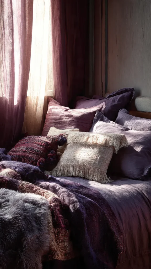 Layering textiles is key to achieving a cozy bedroom. Combine different shades of earthy purple through throws, cushions, and rugs. Mixing lighter lavender tones with deeper aubergine or plum creates visual interest and depth. Stick to natural fabrics like cotton, wool, and linen to maintain an organic feel that enhances comfort.