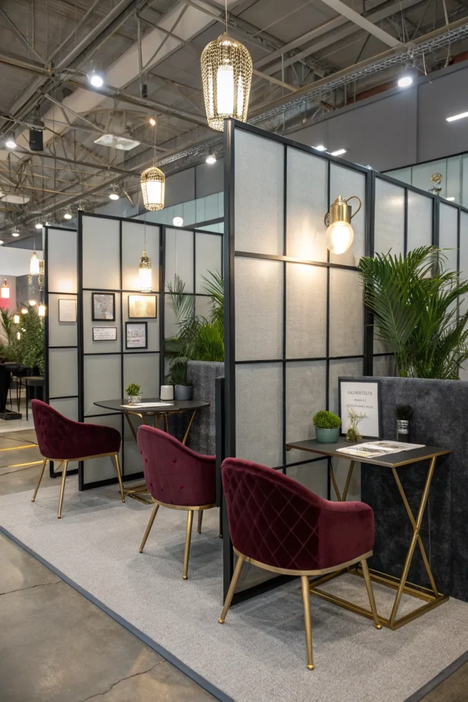 For those who love a bold, urban style, this cubicle combines rugged materials with modern design. Picture dark wood with black metal accents, matte finishes, and sleek lighting. The result feels confident and professional.