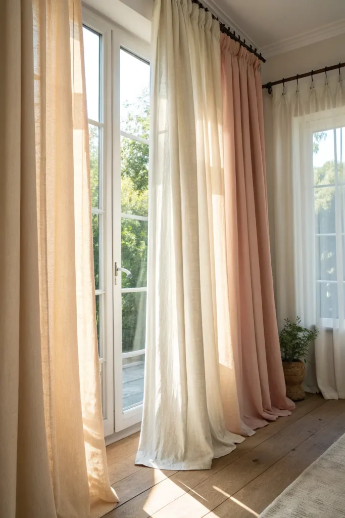Choose panels that lightly touch the floor or slightly puddle for a soft, luxurious look. This trick works beautifully in living rooms and bedrooms, especially when paired with minimal furniture and clean lines.