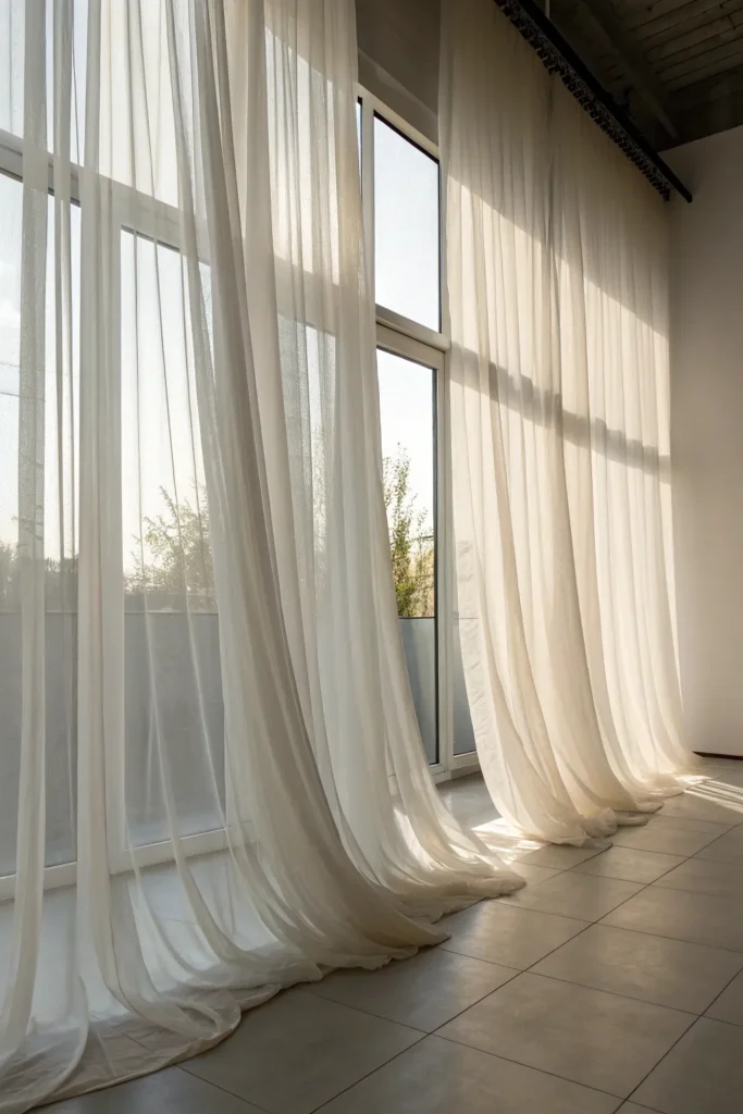 Sheer curtains are especially effective in rooms with limited natural light or lower ceilings. Their translucent quality keeps the space feeling open while still providing softness and privacy.