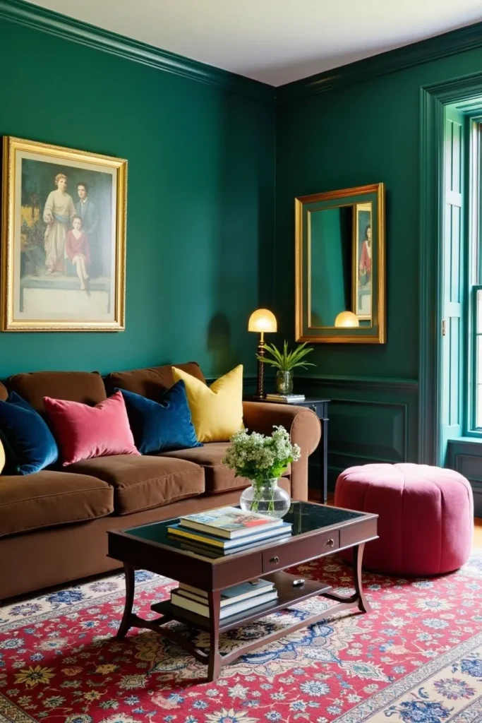 2. Bold Jewel Tone Accent Wall with Dramatic Flair