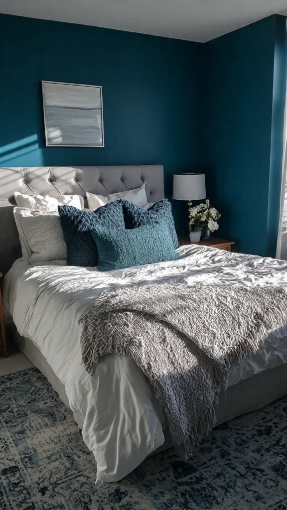 Dark teal bedroom walls offer a beautiful balance of drama and tranquility. With the right decor, textures, and lighting, they can transform any bedroom into a rich, relaxing, and deeply comforting sanctuary that feels both bold and timeless.