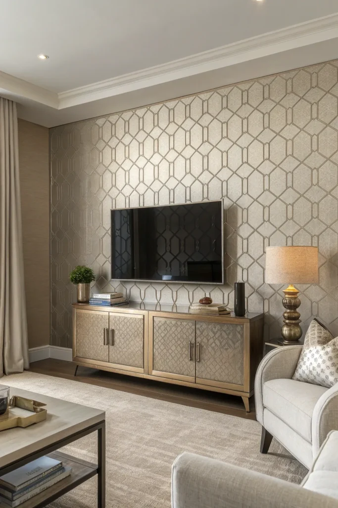 Choose modern geometric patterns, abstract textures, or subtle metallics to elevate the design. Pair with neutral furniture to keep the look balanced.