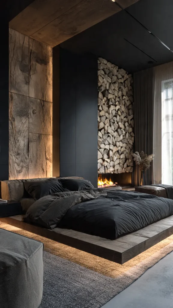 When paired with crisp linens or metallic accents, the look becomes polished. It works especially well in modern or masculine interiors. The result is a confident, stylish bedroom.