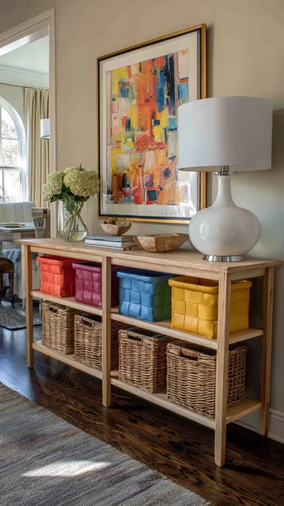 13. Console Table with Baskets
