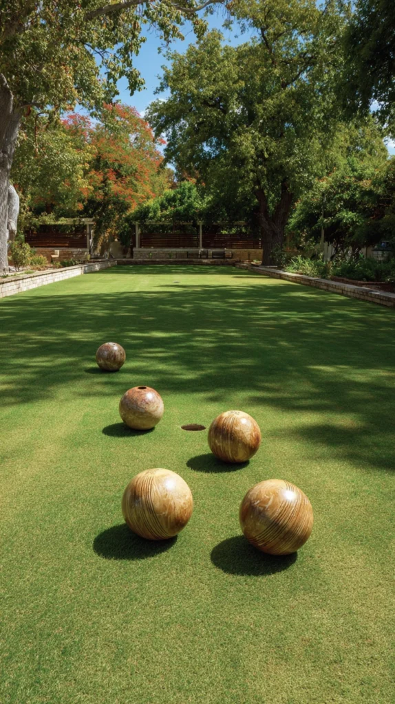 Excavate the court area to a depth of 10cm, install a treated timber border frame at ground level, fill with a compacted base layer of crushed limestone topped with a 3cm layer of decomposed granite, and rake level. The granite surface provides the ideal playing texture for bocce — firm enough for consistent ball rolling, slightly yielding for the satisfying thud of a well-thrown bocce ball landing precisely where intended.