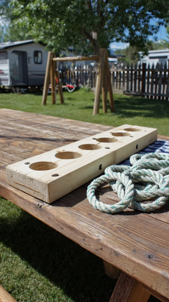 Pro Tip: Vary the height of the ring toss pegs significantly — from a short 10cm peg to a tall 30cm peg — to create a genuine range of difficulty within the single game. All pegs at the same height create a game with only distance as the difficulty variable — boring for adults once the optimal throwing technique is established.