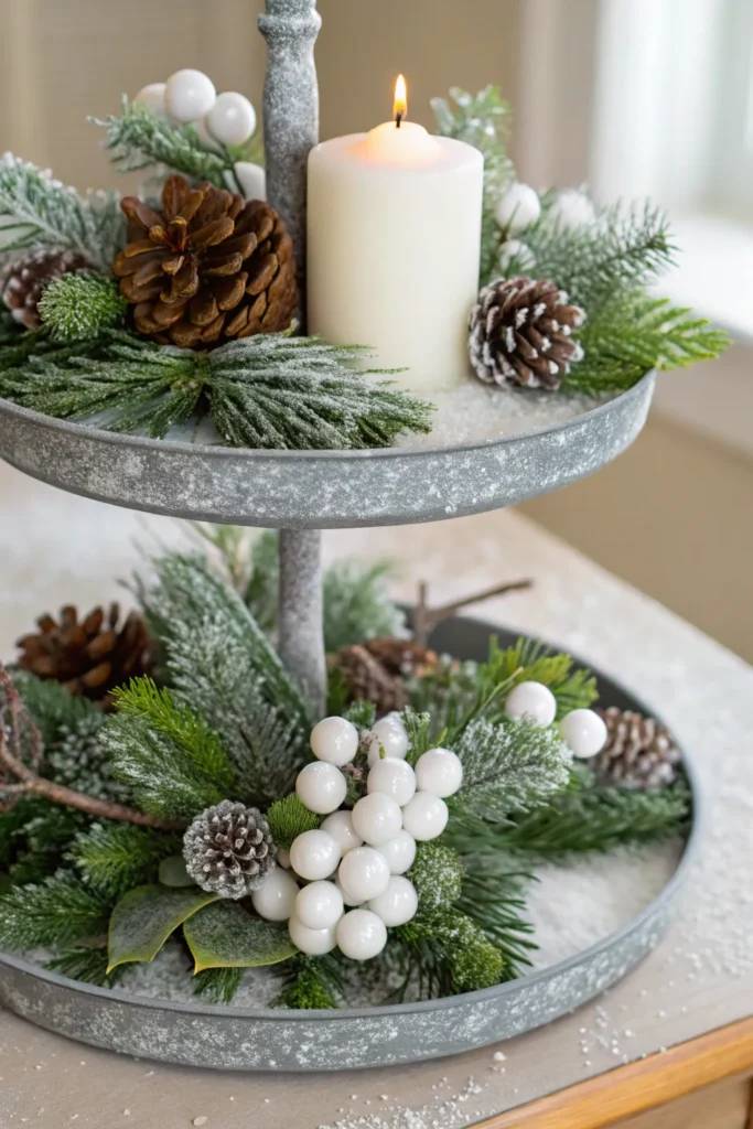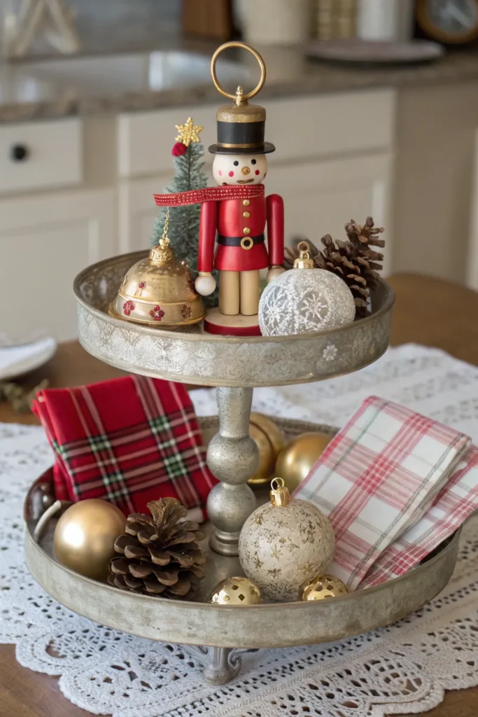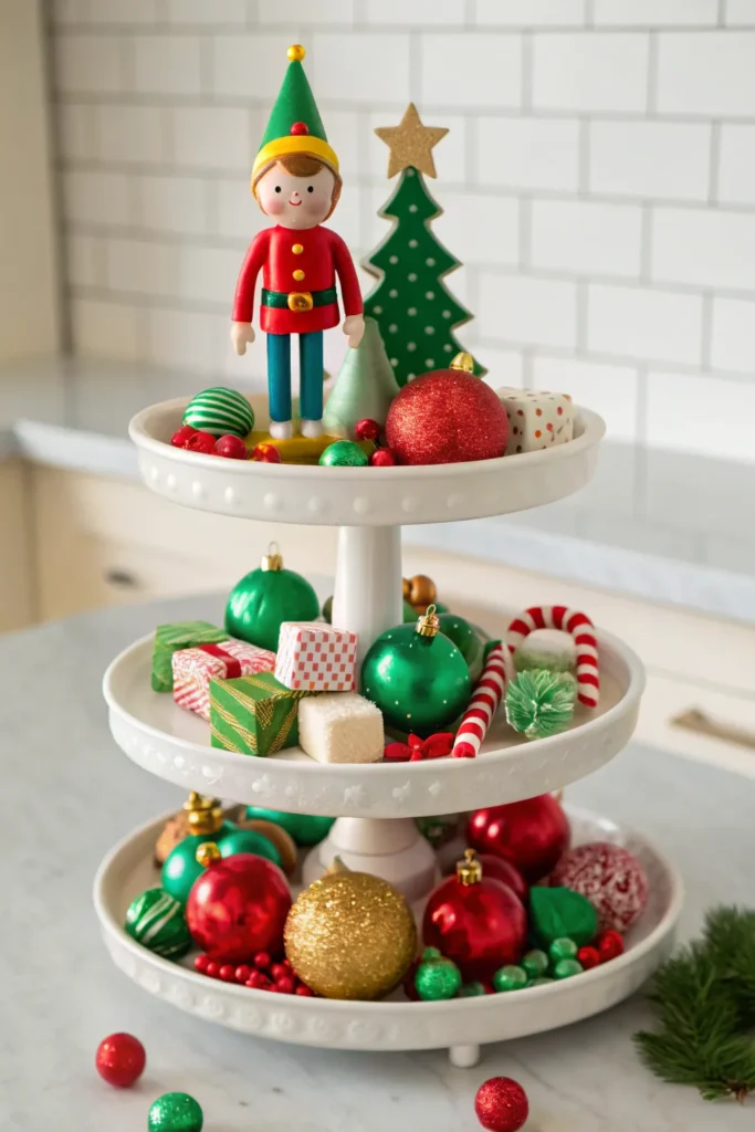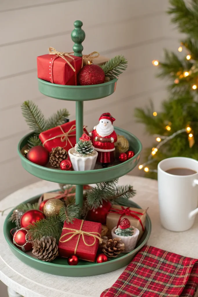 A tiered tray is one of the easiest and most charming ways to add festive cheer to your home. Whether you place it on your kitchen counter, coffee table, or entryway, it instantly becomes a centerpiece that spreads Christmas joy.