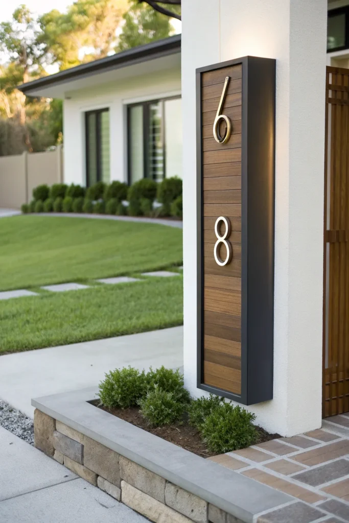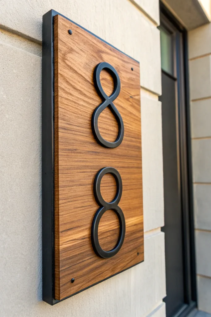 Floating numbers add dimension and shadow play, giving your exterior a high-end architectural feel. Install metal or acrylic numbers using standoffs so they sit slightly away from the surface of the wall or board.