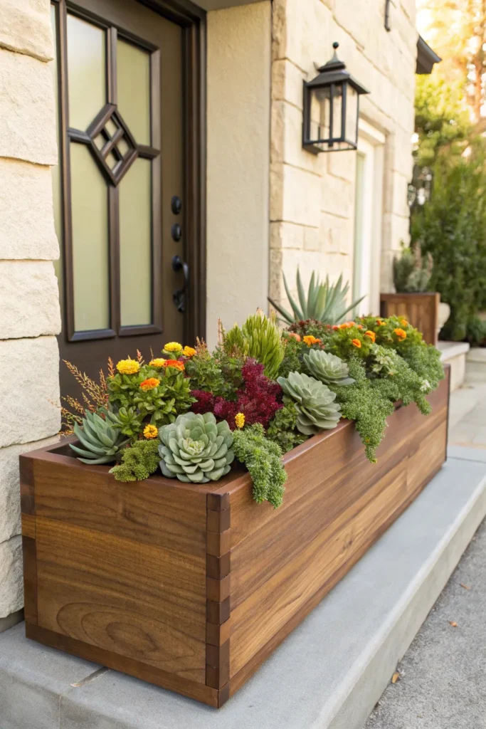 This design adds life and color to your entryway and brings a welcoming feel to your doorstep. It’s a great choice for homeowners who enjoy gardening or want to add natural elements without needing a large space.