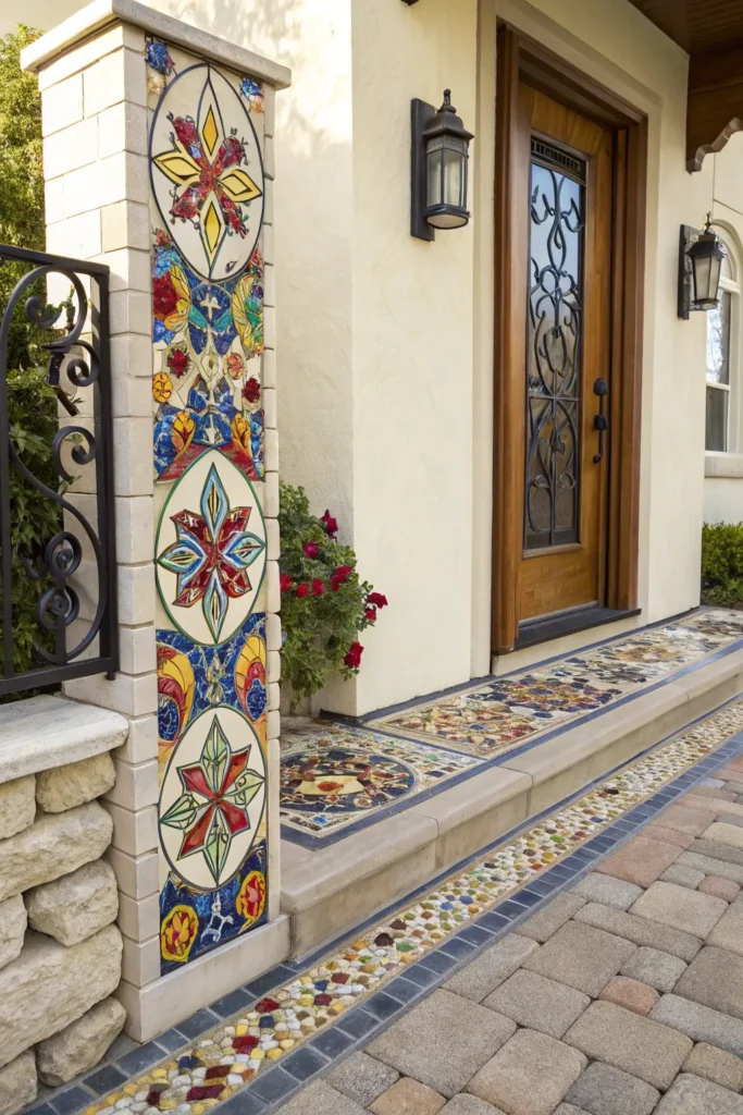 Mosaic tile signs are perfect for homeowners who want something artistic and colorful. Use small ceramic, glass, or stone tiles to create a vibrant patterned background. Mount your numbers on top or embed them into the mosaic design.