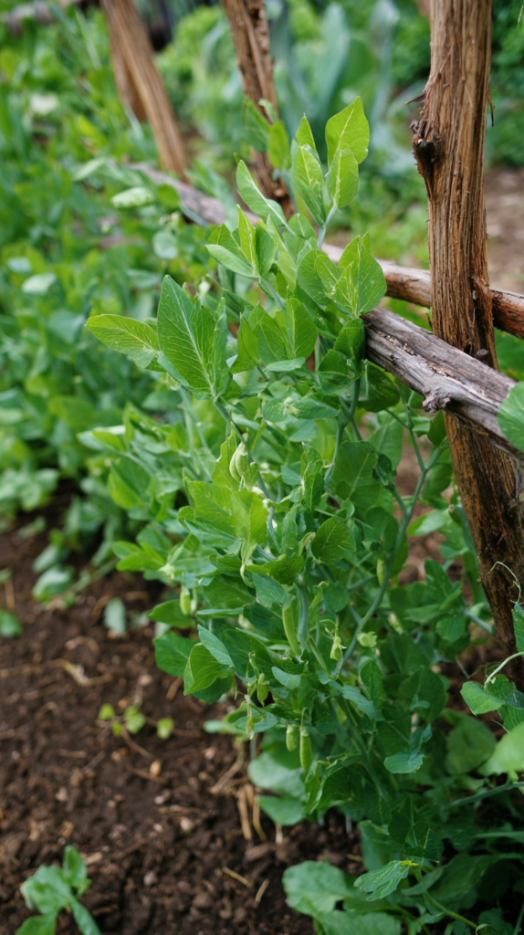 Pea sticks — short, branching twigs pushed into the soil around young pea plants — are one of the oldest and most naturally effective plant support methods in existence. The multiple branching points of a twiggy stick provide exactly the kind of irregular, multi-directional grip that pea tendrils evolved to find, and the natural material disappears into the planting as the season progresses.