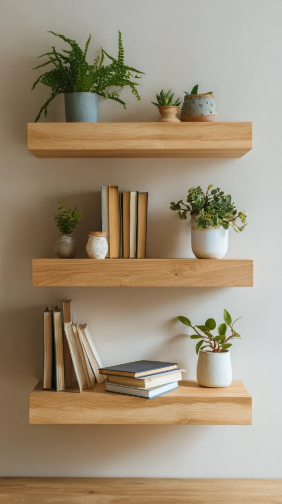1. Floating Wooden Wall Shelves