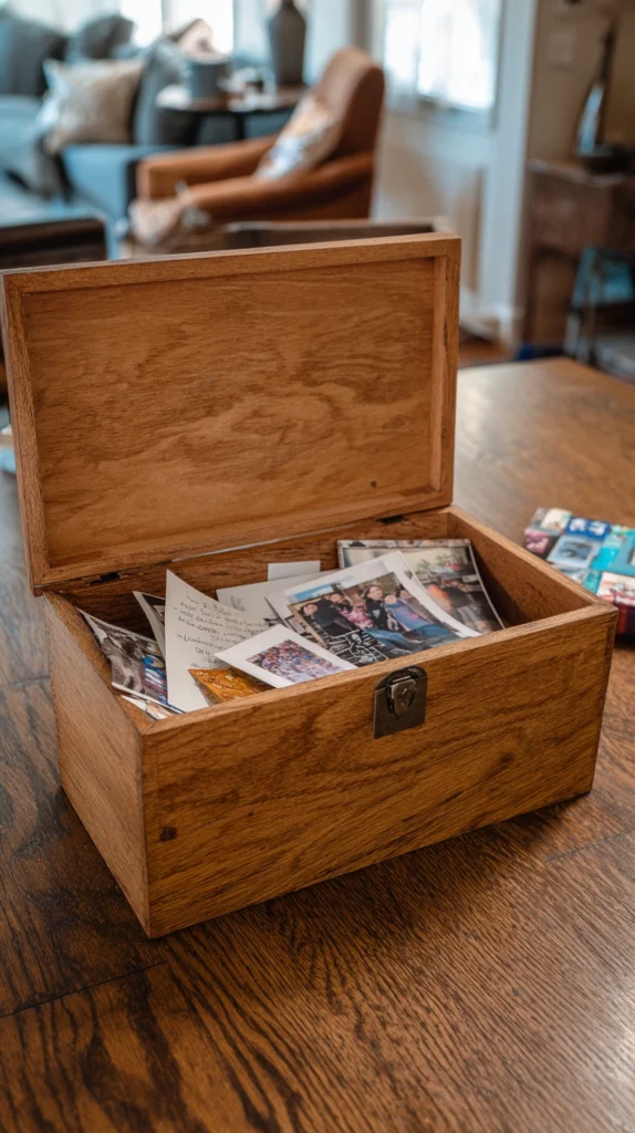A handmade wooden memory box is perhaps the most meaningful project on this entire list. Built to hold photographs, letters, small mementos, and keepsakes, it is a piece that carries genuine emotional weight and becomes more precious with every passing year.