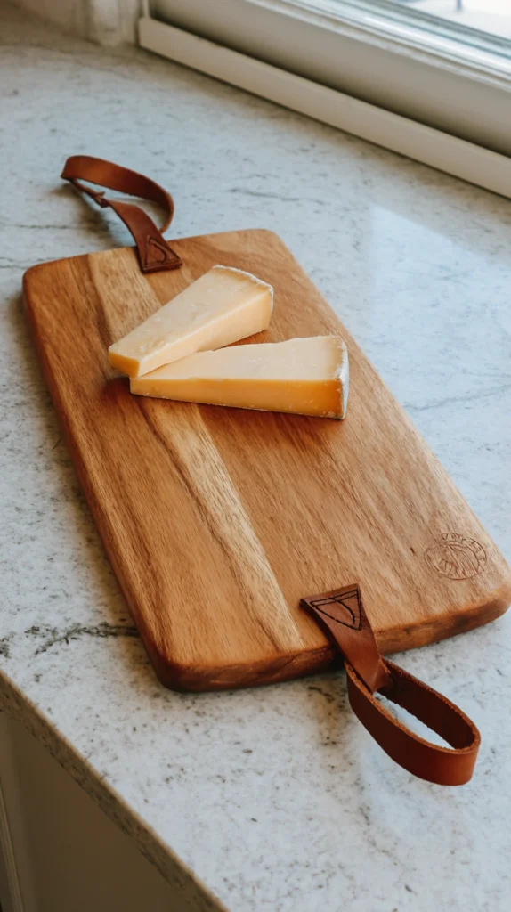 2. Wooden Serving Board with Leather Strap Handle